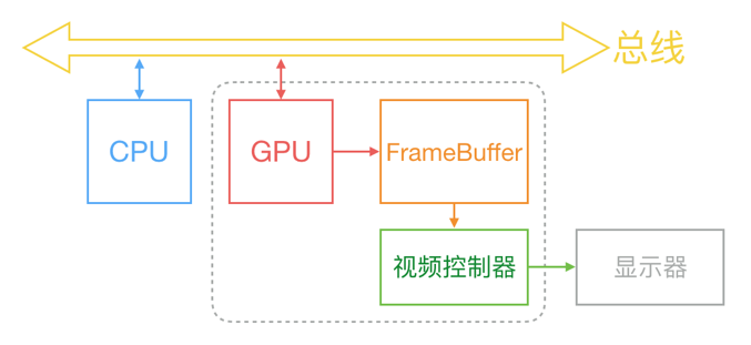 Flutter绘制 一般地来说,计算机系统中,CPU、GPU和显示器以一种特定的方式协作:CPU将计算好的显示内容提交给 GPU,GPU渲染后放入帧缓冲区,然后视频控制器按照 VSync信号从帧缓冲区取帧数据传递给显示器显示。