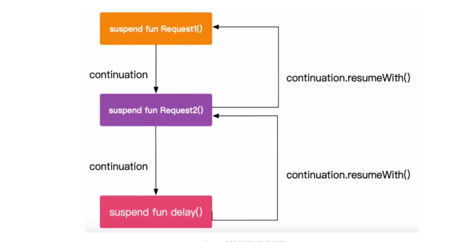 - 函数的执行过程中,遇到挂起操作时,会将当前的Continuation对象传递给挂起函数。